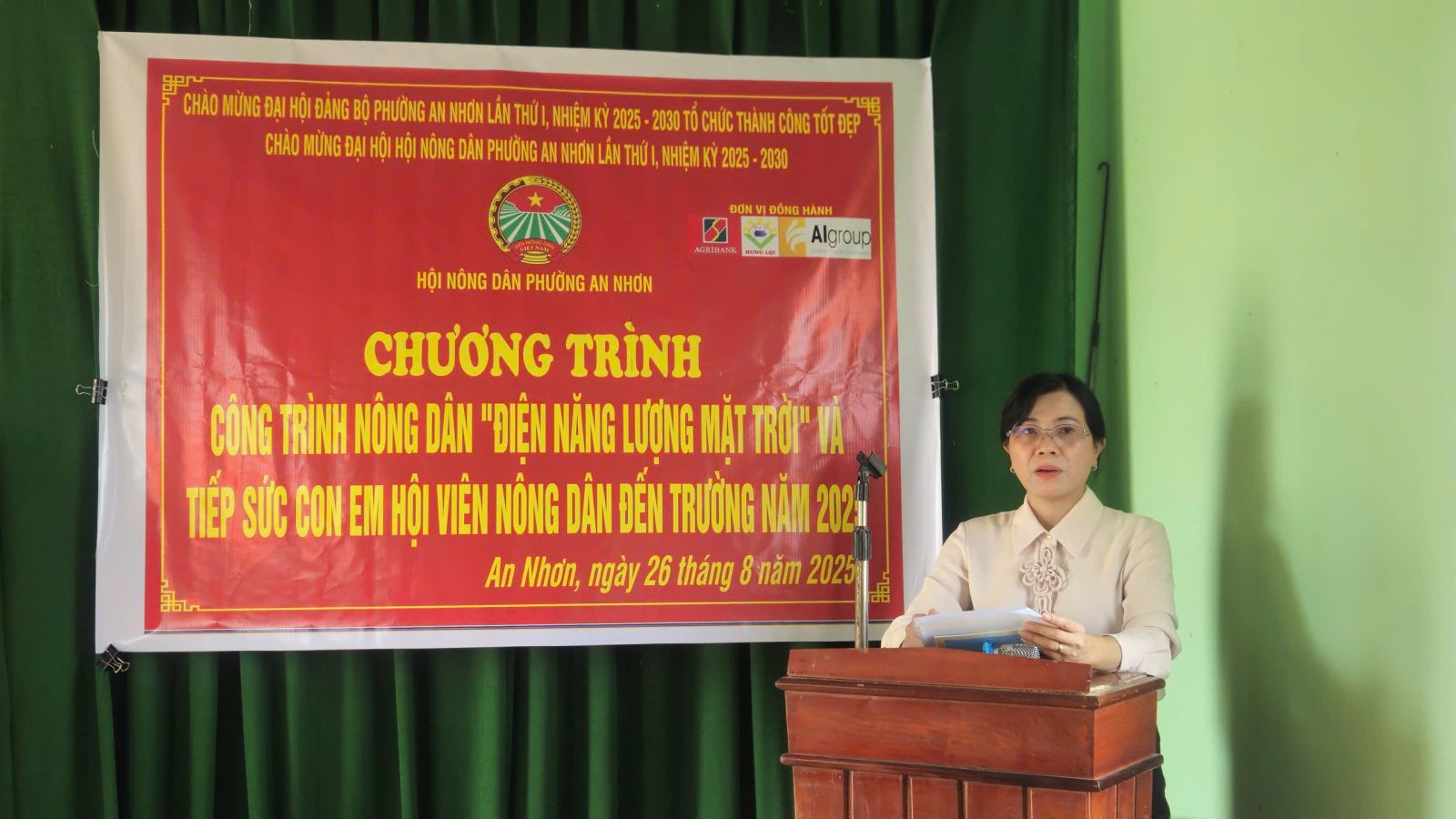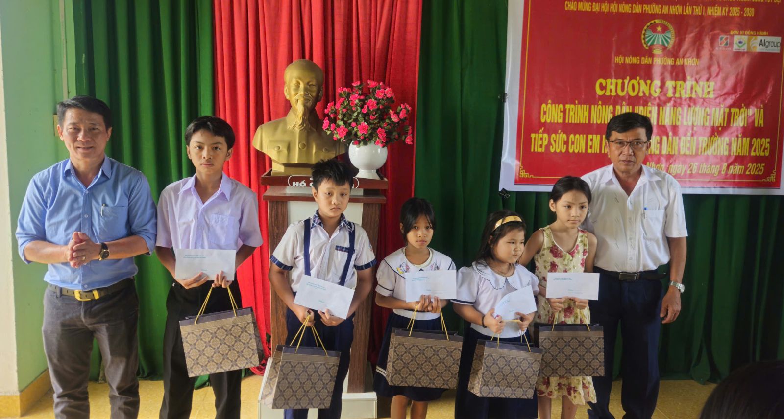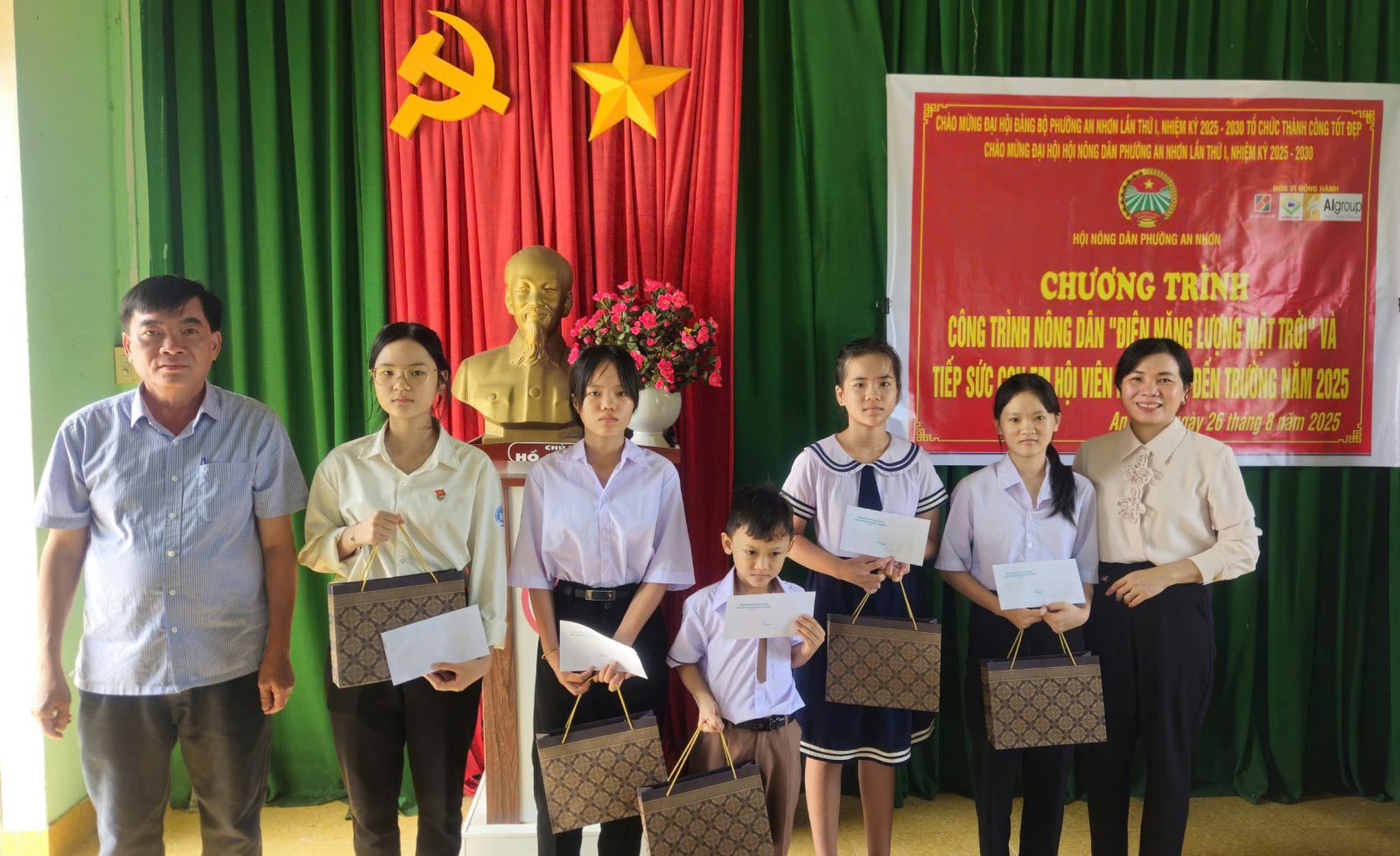 Dịp này, Hội nông dân phường cũng đã tổ chức hoạt động “Tiếp sức con em hội viên nông dân đến trường năm 2025”, tổ chức trao tặng 10 suất quà, mỗi suất trị giá 300.000đ cho 10 em học sinh có hoàn cảnh khó khăn, vượt khó học tốt trên địa bàn phường, góp phần chia sẻ khó khăn, động viên tinh thần các em có thêm niềm tin, nghị lực để vượt khó vươn lên trong học tập, trở thành những công dân có ích cho quê hương, đất nước.