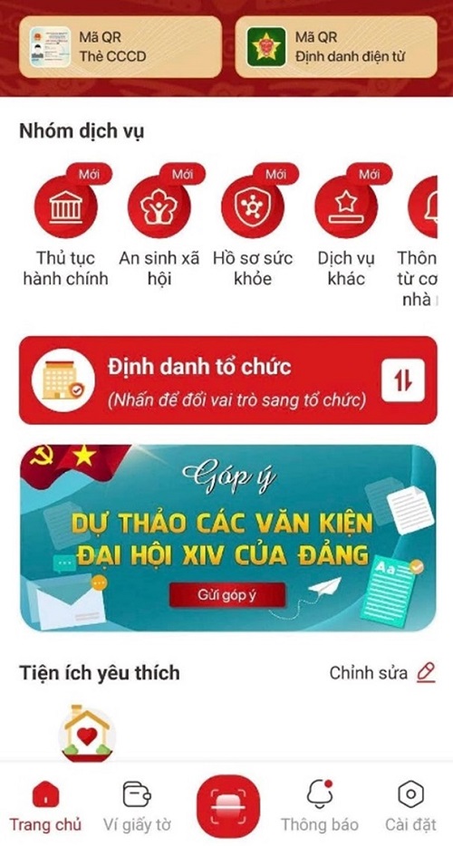 Bước 1: Công dân đăng nhập vào ứng dụng VNeID, tại màn hình trang chủ nhấn vào banner “Góp ý dự thảo văn kiện Đại hội Đảng”.