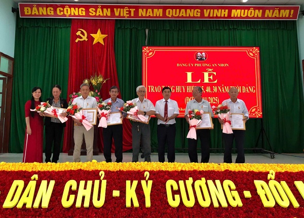Trong đợt này, Đảng bộ phường An Nhơn có nhiều đảng viên được nhận huy hiệu các hạng trong đó: 30 năm tuổi Đảng có 8 đồng chí, 40 năm tuổi Đảng có 4 đồng chí và 45 năm tuổi Đảng có 3 đồng chí. Mỗi đảng viên được vinh danh đều là tấm gương sáng về phẩm chất chính trị, đạo đức, lối sống, tinh thần tận tụy với công việc và luôn giữ vững bản lĩnh người đảng viên cộng sản. Các đảng viên được nhận Huy hiệu bày tỏ niềm xúc động và tự hào trước sự quan tâm của Đảng. Nhiều đồng chí chia sẻ rằng đây là dấu mốc đáng nhớ trong cuộc đời hoạt động cách mạng, đồng thời hứa sẽ tiếp tục nêu cao tinh thần gương mẫu, đoàn kết, đóng góp vào sự phát triển của địa phương.